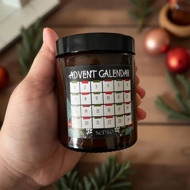 Slevomatí tip: Zpříjemněte si čekání na Ježíška zapálením svíčky, která díky ilustraci se 24 okénky poslouží jako originální adventní kalendář.