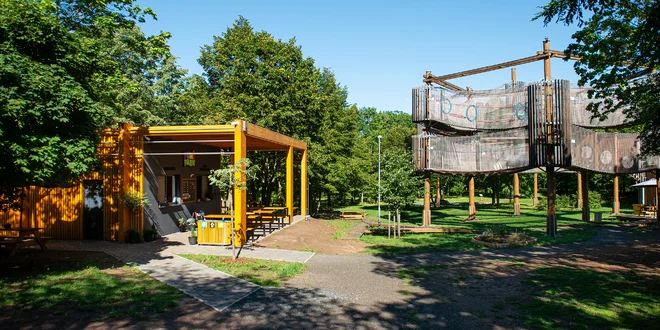 Po pořádném dobrodružství v lanech bludiště se budete jistě chtít trochu osvěžit. Kdyby tak bylo součástí areálu i nějaké to občerstvení… A ono je! A dokonce s posezením. Když se tak tatínkovi nebo mamince nebude chtít prolézat opičí dráhou korunami stromů, můžou si jednoduše sednout ke kávě ze stánku na jedlou krásu a dívat se, jak si děti konečně mají kde hrát.