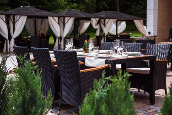 Za hezkého počasí poseďte na terase s krásným výhledem do zahrady i blízkého okolí. Venku je také dětské hřiště, takže pokud přijedete se svými nejmenšími, parádně se tu zabaví, zatímco vy si budete vychutnávat zasloužený klid.