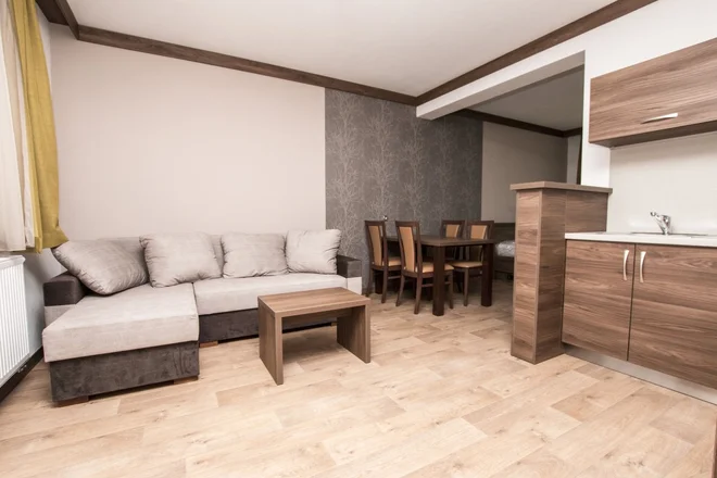Cestujete-li v kompletní sestavě, zvolte ubytování v apartmánu. Do toho se pohodlně vejde až 5 osob a kromě komfortních postelí tu najdete také vybavený kuchyňský kout s jídelnou.