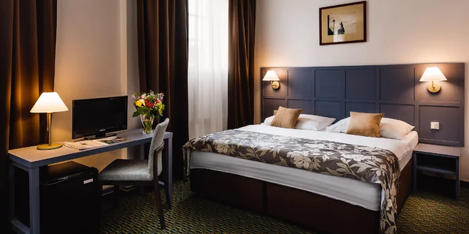 Připravený pro vás bude elegantně zařízený pokoj o rozměru cca 20 m². K dispozici budete mít pohodlné postele, satelitní TV a vlastní koupelnu se sprchou. V celém hotelu je pak samozřejmostí Wi‑Fi připojení. Jistě vás také potěší, že na pokoji budete mít set na přípravu káva a čaje. Každé ráno vás zde také pohostí – v ceně balíčku máte snídaně, které se podávají formou bufetu. Na uvítanou se těšte na welcome drink.